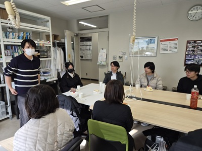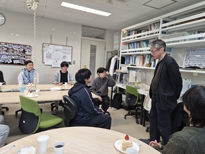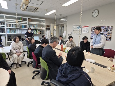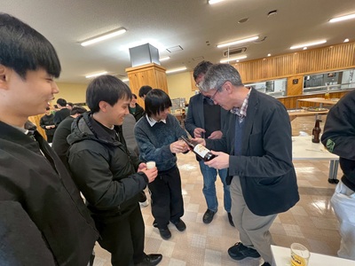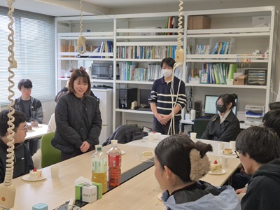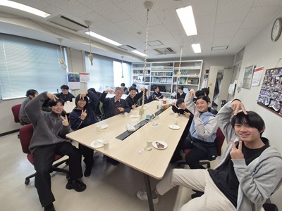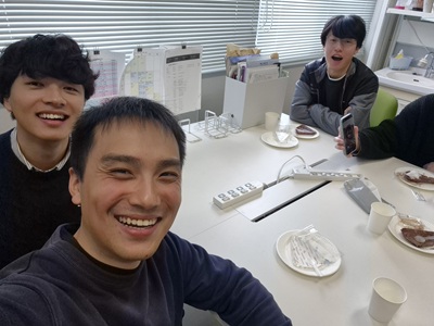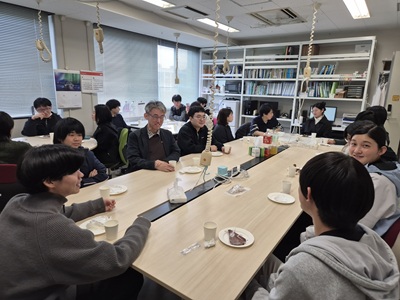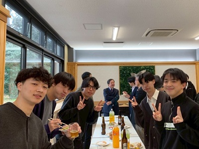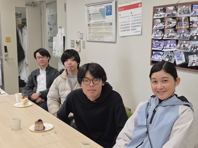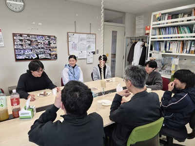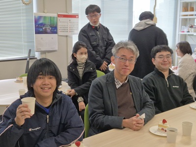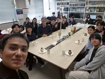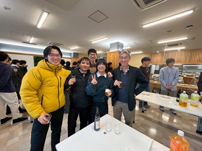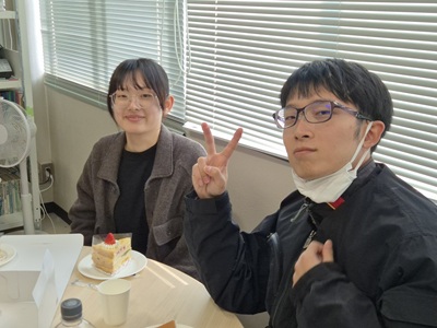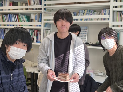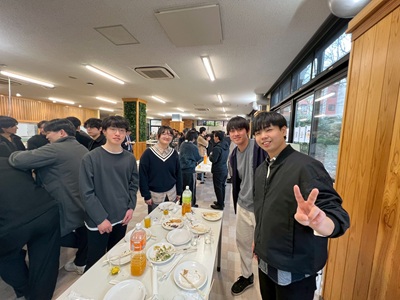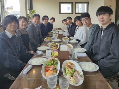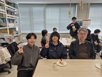 2月27日に生協第二食堂にて祝賀会が開催されました。今年度から研究室の体制が変わり、薄井先生、道見先生は多忙を極めている中、発表会および論文提出に向けて学生では考えられないほどのお時間と労力を割いてご指導いただきました。ご丁寧にご指導をしていただいたことに感謝し、先生方と卒業生をお互いに労う感慨深い時間を過ごす事ができました。また、発表会で深く議論していただいた学科の先生方にも感謝し、お時間の許す限りお話することができました。修了後、卒業後も、研究を通して学んだことを活かすことができるように頑張りたいと思います。