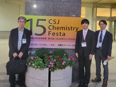 10月22〜24日にタワーホール船堀にて 第15回CSJ化学フェスタ2025が開催され、当研究室ではM1の相馬さんがポスター発表を行いました。ポスター発表では聴衆との活発なディスカッションを通して有意義な時間を過ごすことができました。また、学会の合間には、美味しいラーメンやたい焼きを楽しみ、良い気分転換となりました。今回得られた知見や経験を、今後の研究活動に活かしていきたいと思います。