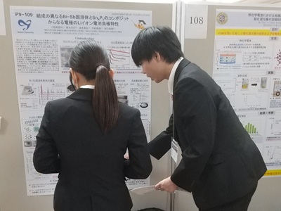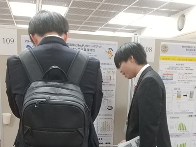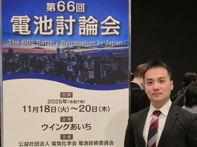 11月18〜20日にウインクあいちにて 第66回電池討論会が開催され、來間さん、今西さん、冨松さん、三木さん、加藤さんが口頭発表を行いました。電池の専門家が集まる大きな規模の学会のため緊張したかと思いますが、先生方の懇切丁寧なご指導のおかげで無事に発表を終えることができました。また、学会の合間には名古屋観光や名物料理を楽しみ、心身ともにリフレッシュする良い機会となりました。今回得られた経験を今後の研究や修士論文公聴会にも活かし、さらなる成長につなげたいと思います。